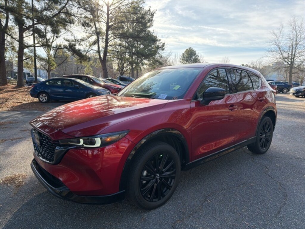 Capital of Cary is very proud to offer this fantastic 2023 Mazda CX-5 Soul Red Crystal Metallic 2.5 Turbo with the following features: LEATHER**, HEATED SEATS**, BLUETOOTH HANDS FREE**, BACK UP CAMERA**, SUNROOF / MOONROOF**, BLIND SPOT MONITOR**, POWER LIFT GATE**, TWO SETS OF KEYS**, FULLY DETAILED**, SAFETY INSPECTED**, ONE OWNER, LOCAL TRADE, CX-5 2.5 Turbo, 4D Sport Utility, 2.5L I4, 6-Speed Automatic, AWD, Soul Red Crystal Metallic, Black Leather, 10 Speakers, Active Cruise Control, AppLink/Apple CarPlay and Android Auto, Auto-dimming Rear-View mirror, Front dual zone A/C, Heads-Up Display, Heated door mirrors, Heated front seats, Heated rear seats, Heated steering wheel, Heated/Ventilated Front Bucket Seats, Leather Seat Trim, Memory seat, Power door mirrors, Power driver seat, Power Liftgate, Power moonroof, Power passenger seat, Ventilated front seats, Wheels: 19" x 7J Aluminum Alloy.