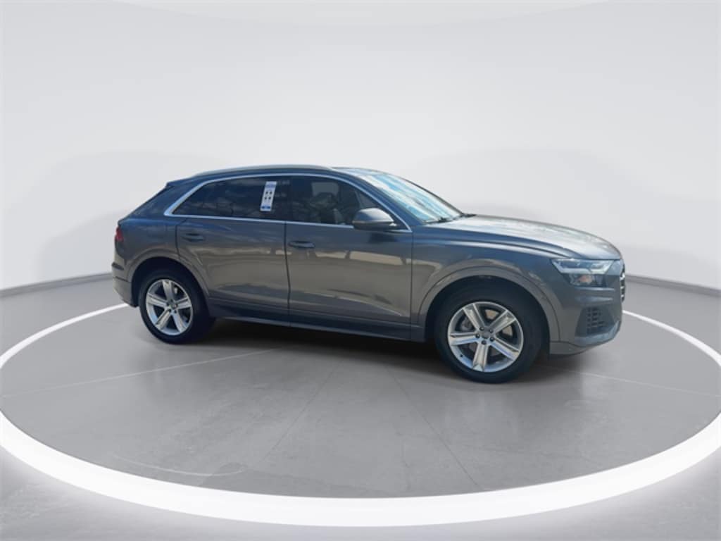 Capital of Cary is very proud to offer this great-looking 2019 Audi Q8 Gray Metallic 3.0T Premium with the following features: LEATHER**, HEATED SEATS**, BLUETOOTH HANDS FREE**, BACK UP CAMERA**, PANORAMIC SUNROOF**, POWER LIFT GATE**, PUSH BUTTON START**, FULLY DETAILED**, DEALER SERVICED**, SAFETY INSPECTED**, INCLUDES WARRANTY**, CARY, APEX, CLAYTON, RALEIGH, GARNER, DURHAM, FUQUAY-VARINA, CHAPEL HILL, GREAT DEAL, BEST DEAL, Q8 3.0T Premium quattro, 4D Sport Utility, 3.0L V6 Turbocharged DOHC 24V LEV3-ULEV125 335hp, 8-Speed Automatic with Tiptronic, quattro, Gray Metallic, Black Leather, Adaptive suspension, Audi Phone Box w/Wireless Charging, Audi Side Assist w/Pre Sense Rear, Auto-dimming Rear-View mirror, Cold Weather Package, Convenience Package, Exterior Parking Camera Rear, Front dual zone A/C, Front fog lights, Heated door mirrors, Heated front seats, Heated Power Folding Auto-Dimming Exterior Mirrors, Heated Rear Seats, Heated Steering Wheel, Leather Seating Surfaces, Leather steering wheel, Memory seat, Navigation System, Power Liftgate, Power moonroof, Power passenger seat, Wheels: 20" 5-Spoke.