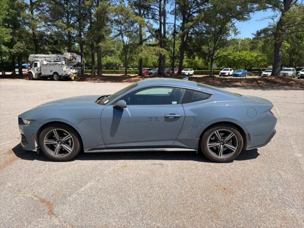 Capital of Cary is honored to offer this outstanding 2025 Ford Mustang Vapor Blue EcoBoost with the following features: BLUETOOTH HANDS FREE**, BACK UP CAMERA**, APPLE CAR PLAY**, ANDROID AUTO**, REAR PARKING SENSORS, Mustang EcoBoost, 2D Coupe, EcoBoost 2.3L I4 GTDi DOHC Turbocharged VCT, Vapor Blue, 9-Speaker Stereo System, Cloth/Vinyl Heated Bucket Seats, Equipment Group 101A High Package, Exterior Parking Camera Rear, SiriusXM w/360L & HD Radio.