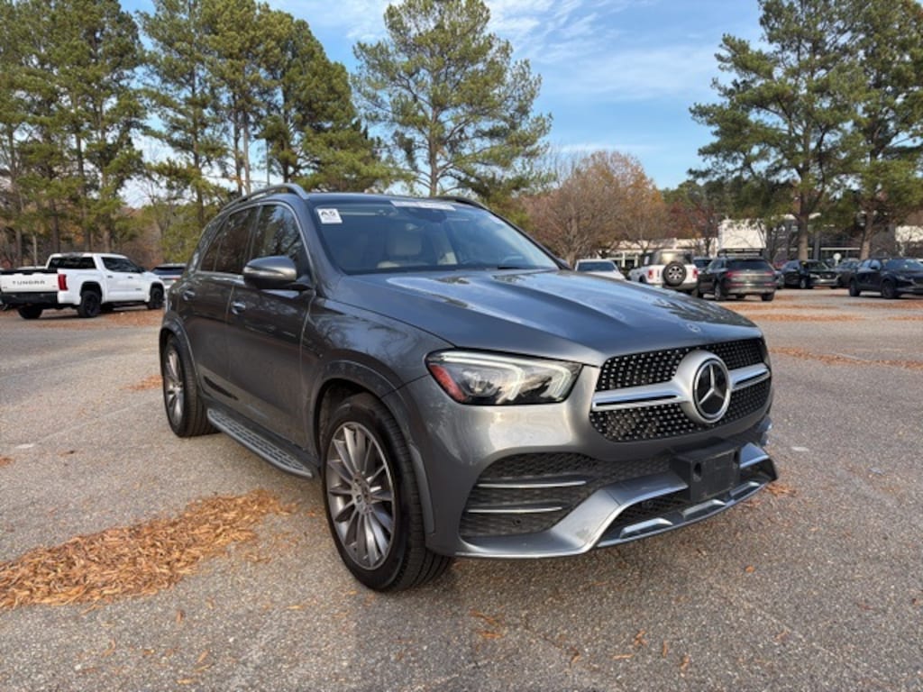 Capital of Cary is very proud to offer this charming-looking 2021 Mercedes-Benz GLE Selenite Gray Metallic GLE 450 with the following features: LEATHER**, HEATED SEATS**, BLUETOOTH HANDS FREE**, BACK UP CAMERA**, SUNROOF / MOONROOF**, PUSH BUTTON START**, FULLY DETAILED**, DEALER SERVICED**, INCLUDES WARRANTY**, GLE 450 4MATIC®, 4D Sport Utility, 3.0L I6 Turbo, 9-Speed Automatic, 4MATIC®, Selenite Gray Metallic, Macchiato/Black w/Leather Seat Trim, 115V Power Outlet, 4-Way Lumbar Support, Active Blind Spot Assist, Active Brake Assist w/Cross-Traffic Function, Active Distance Assist DISTRONIC®, Active Emergency Stop Assist, Active Lane Change Assist, Active Lane Keeping Assist, Active Speed Limit Assist, Active Steering Assist, Active Stop & Go Assist, AMG® Bodystyling, AMG® Line Exterior, AMG® Line Exterior (P31), Android Auto®, Apple CarPlay®, Auto tilt-away steering wheel, Auto-dimming Rear-View mirror, Burmester® Surround Sound System, Driver Assistance Package Plus, Driving Assistance Plus, Dual Exhaust Pipes, Evasive Steering Assist, Functional Sport Exhaust, Heated Front Bucket Seats, Heated front seats, Heated Power Front Seats w/Driver Memory, Leather steering wheel, Memory seat, Parking Assist Code, Power driver seat, Power Liftgate, Power moonroof, Power passenger seat, PRE-SAFE® PLUS Rear Collision Protection, Premium Package, Rain sensing wipers, Route-Based Speed Adaptation, Traffic Sign Assist, Wheels: 21" AMG® Multispoke, Wireless Charging.
